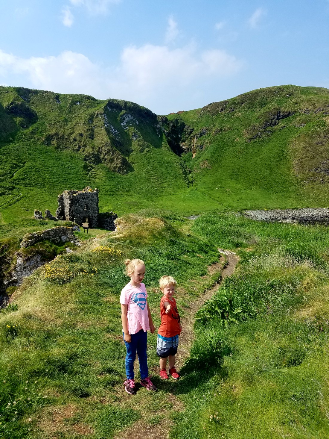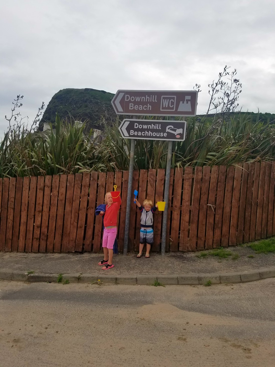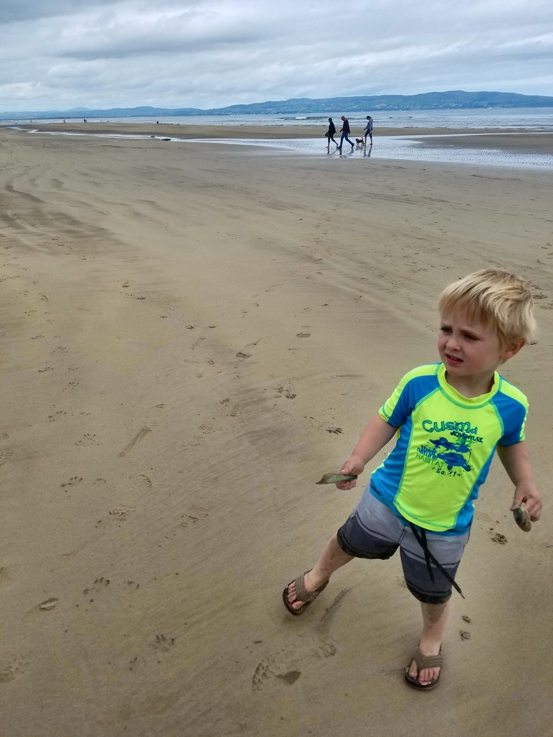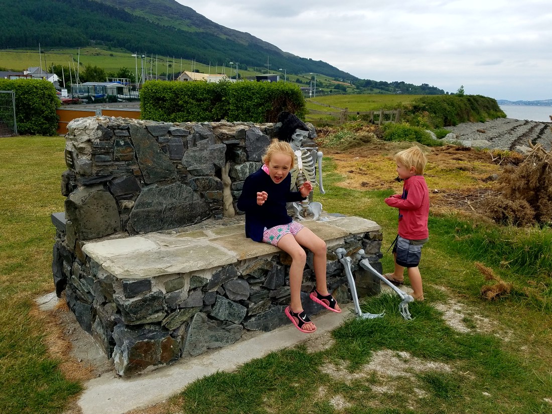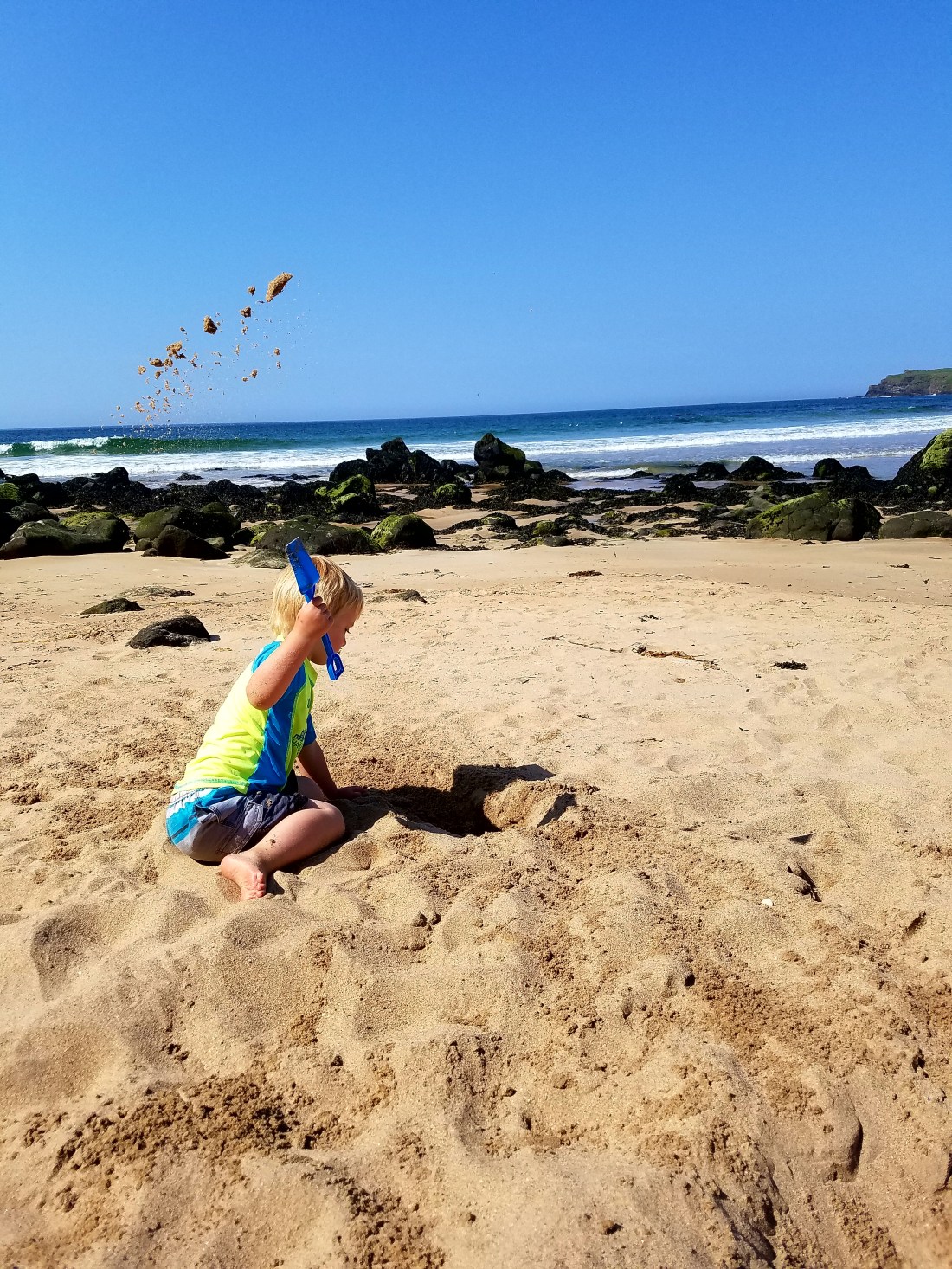There was a lovely little sheltered beach called Sandeel Bay Beach right by our holiday home. It was evening time when we arrived and the tide was in so the beach was not accessible for us. The cousins didn’t care in the slightest as there was a sliver of sand at the top of the bay that they were able to play on. The world’s most expensive buckets and spades came in handy yet again!