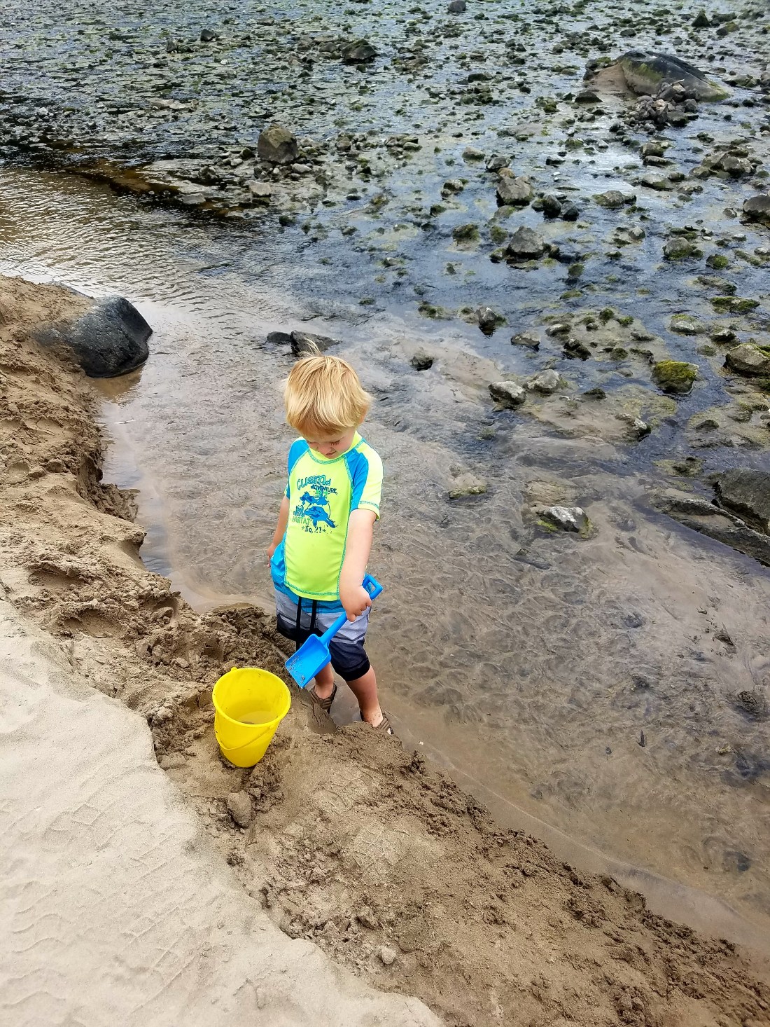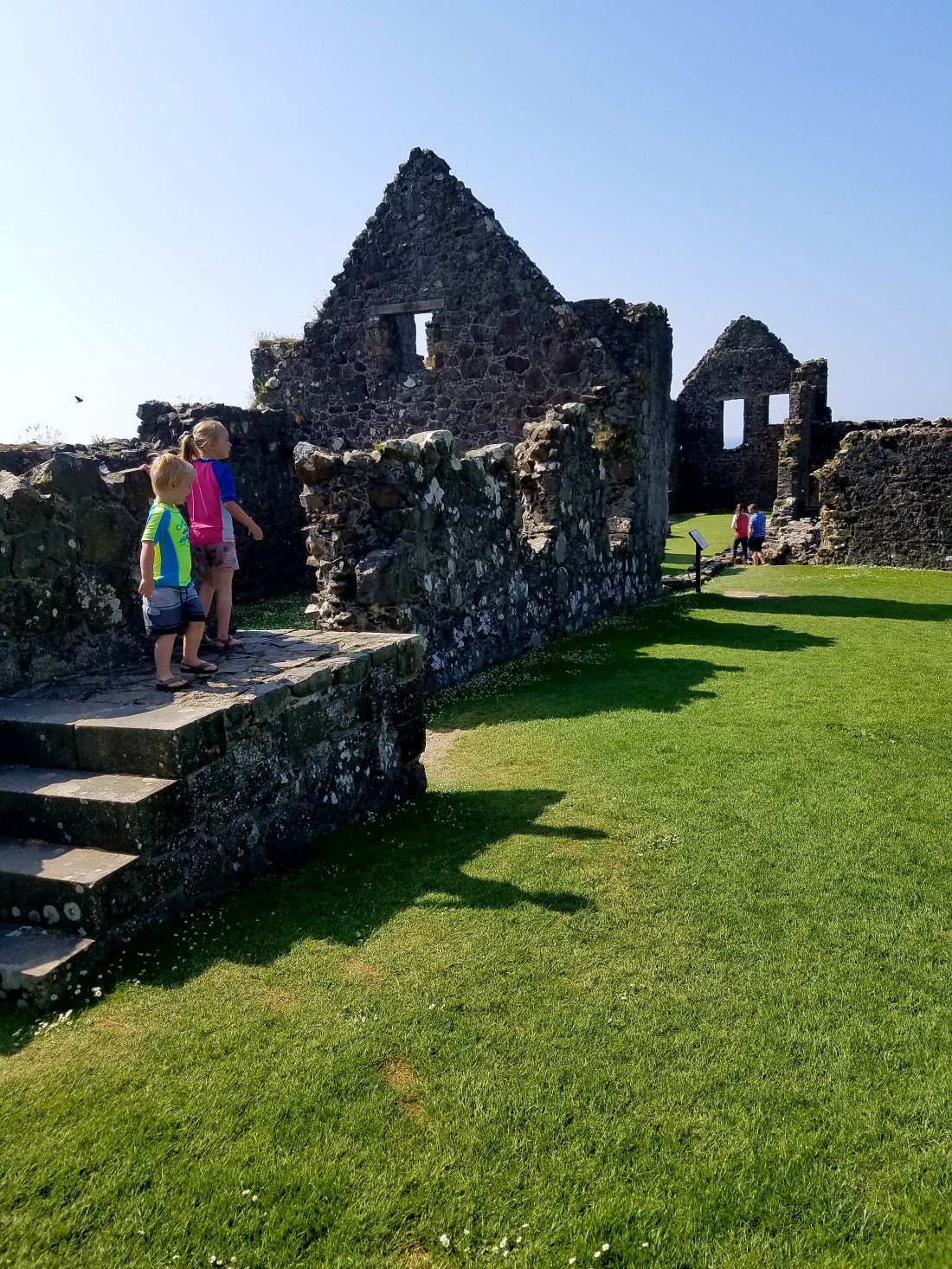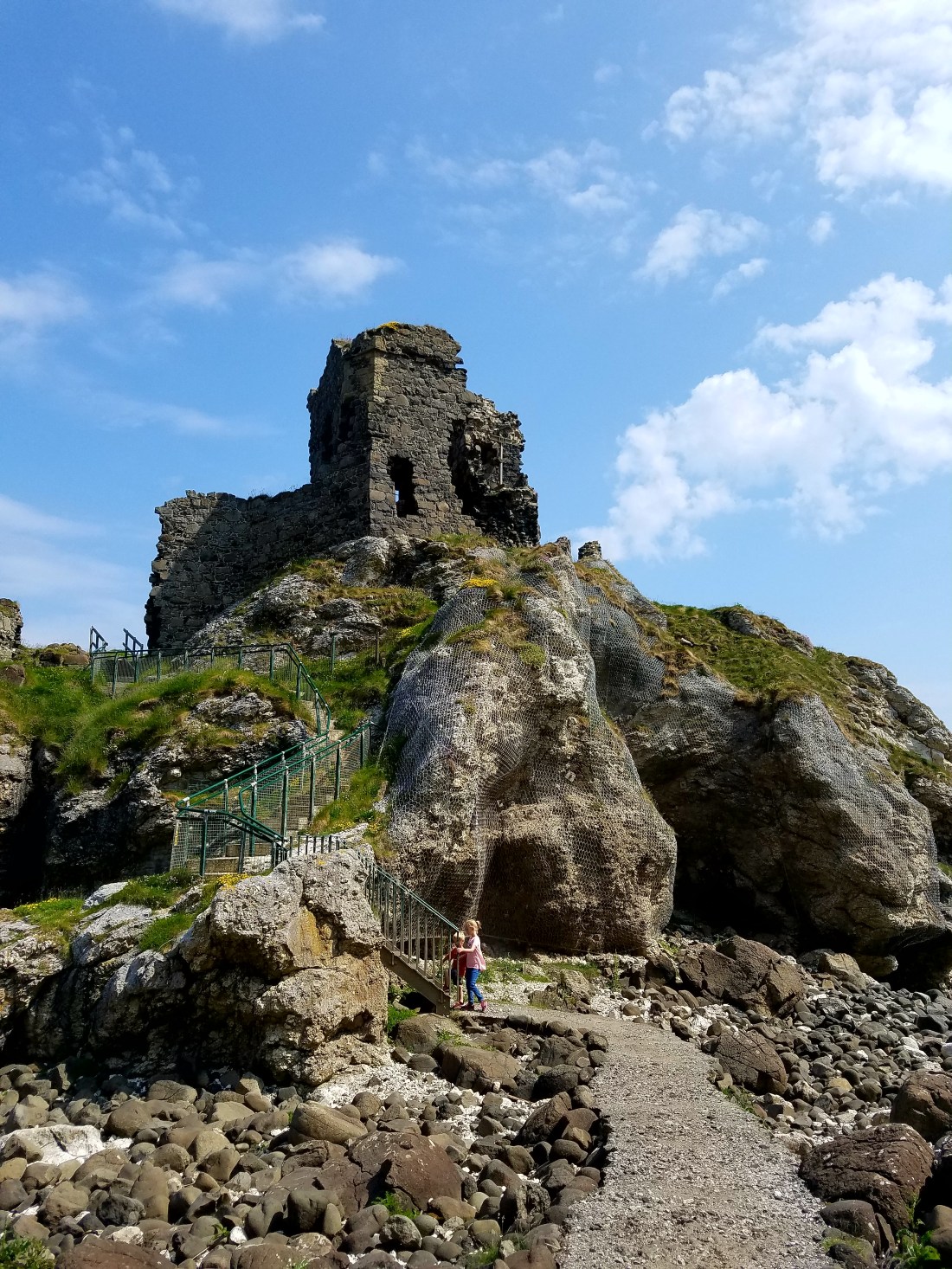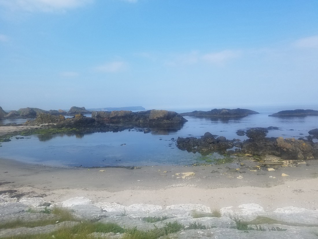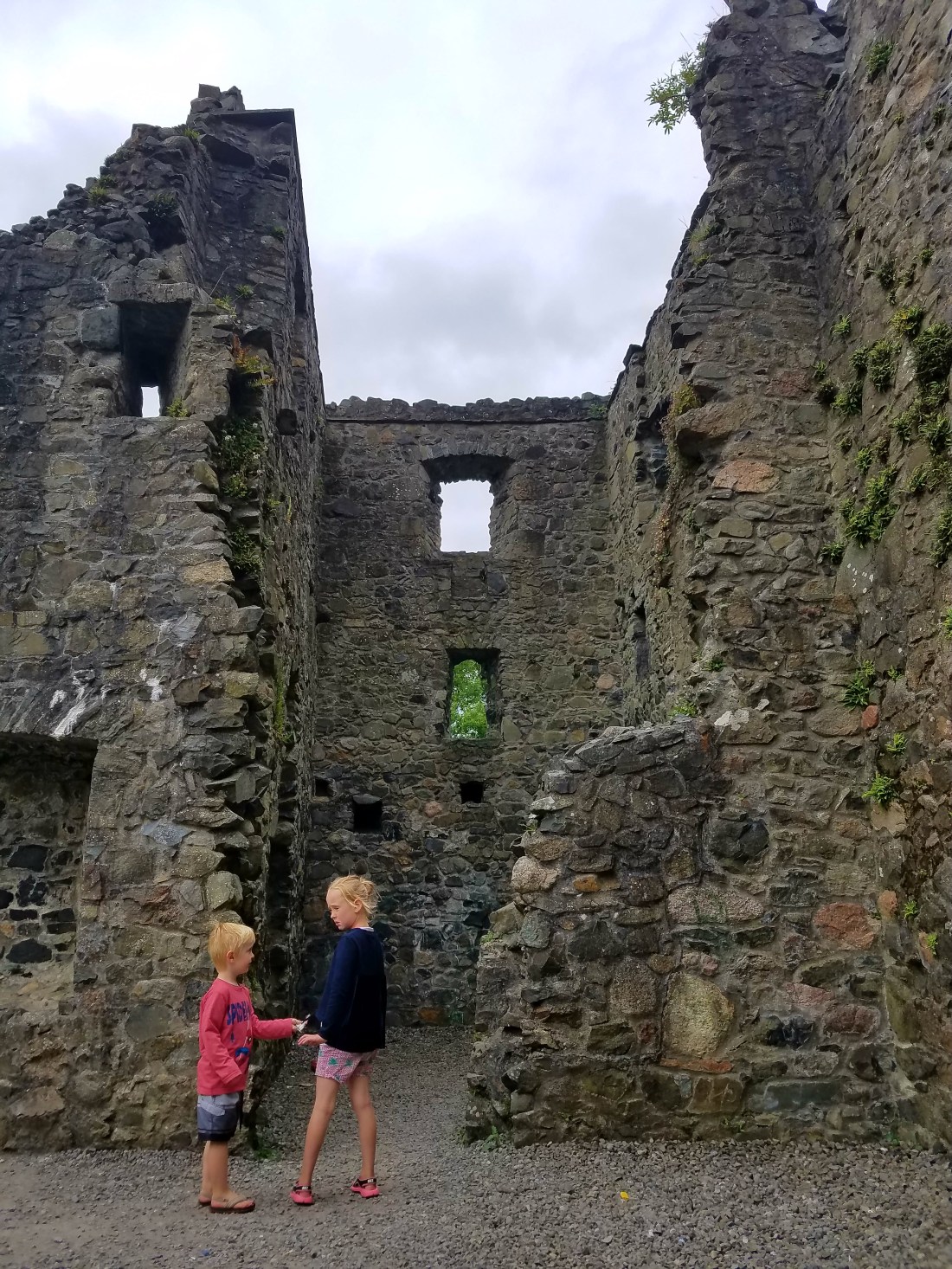 There was a lovely little sheltered beach called Sandeel Bay Beach right by our holiday home. It was evening time when we arrived and the tide was in so the beach was not accessible for us. The cousins didn’t care in the slightest as there was a sliver of sand at the top of the bay that they were able to play on. The world’s most expensive buckets and spades came in handy yet again!