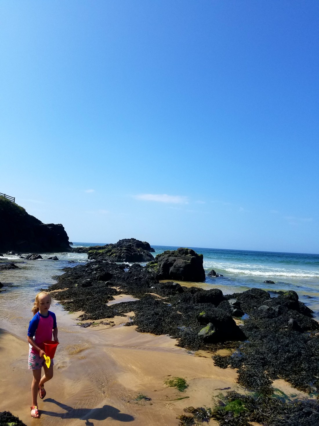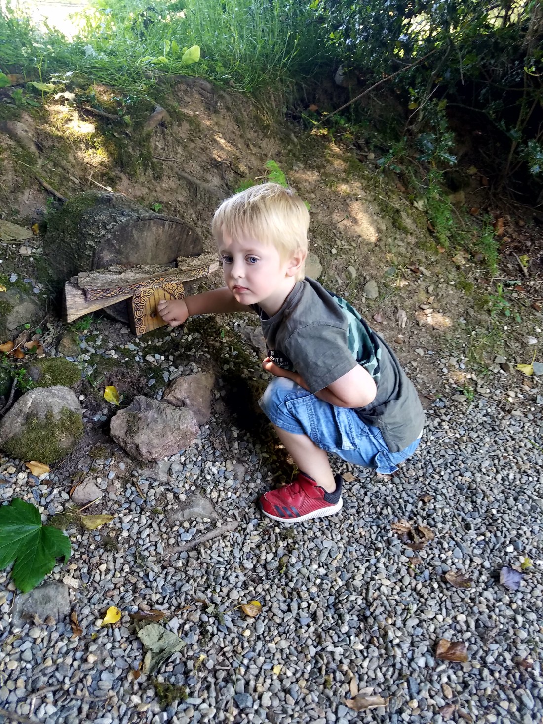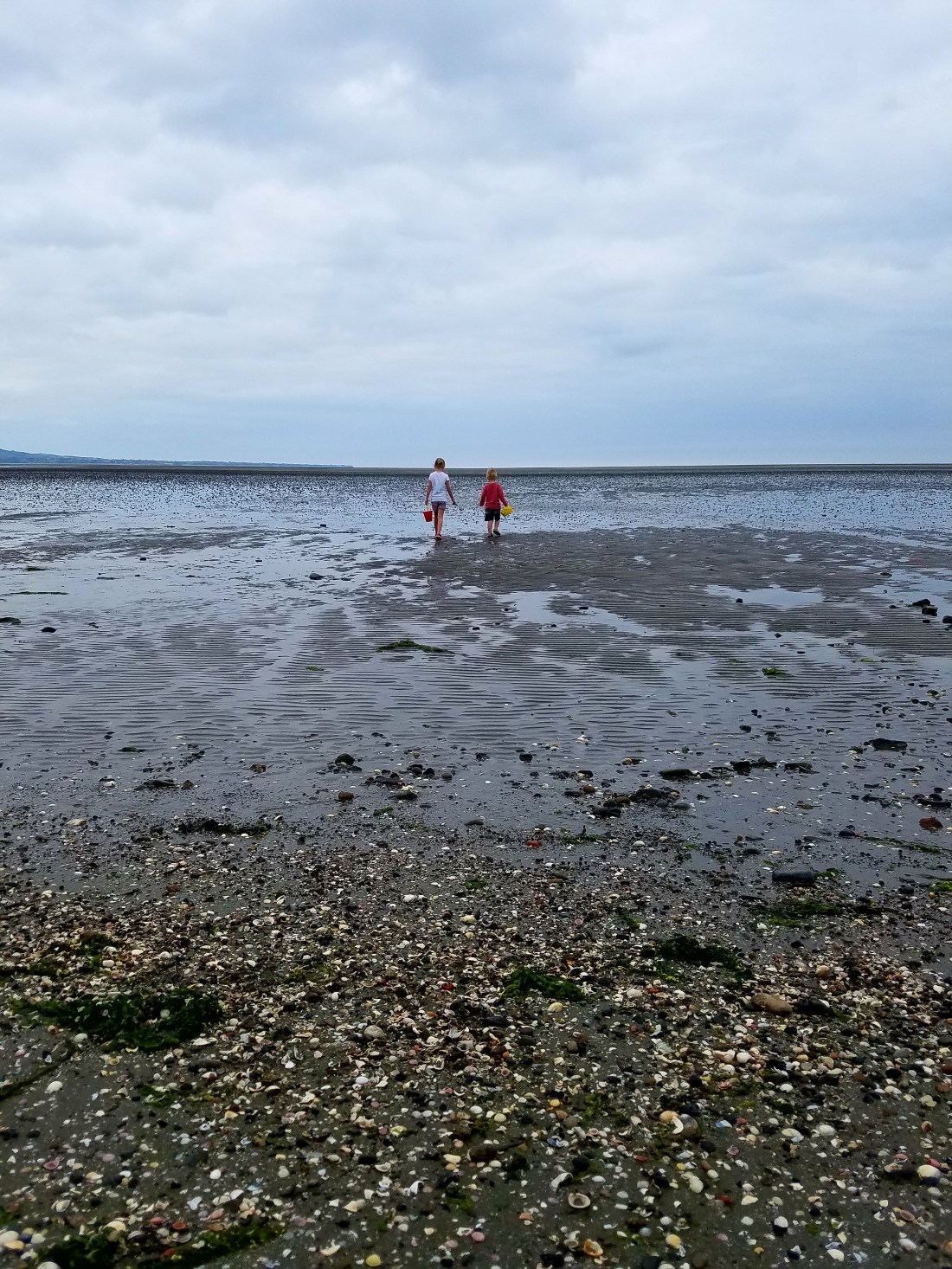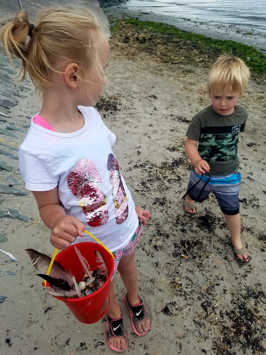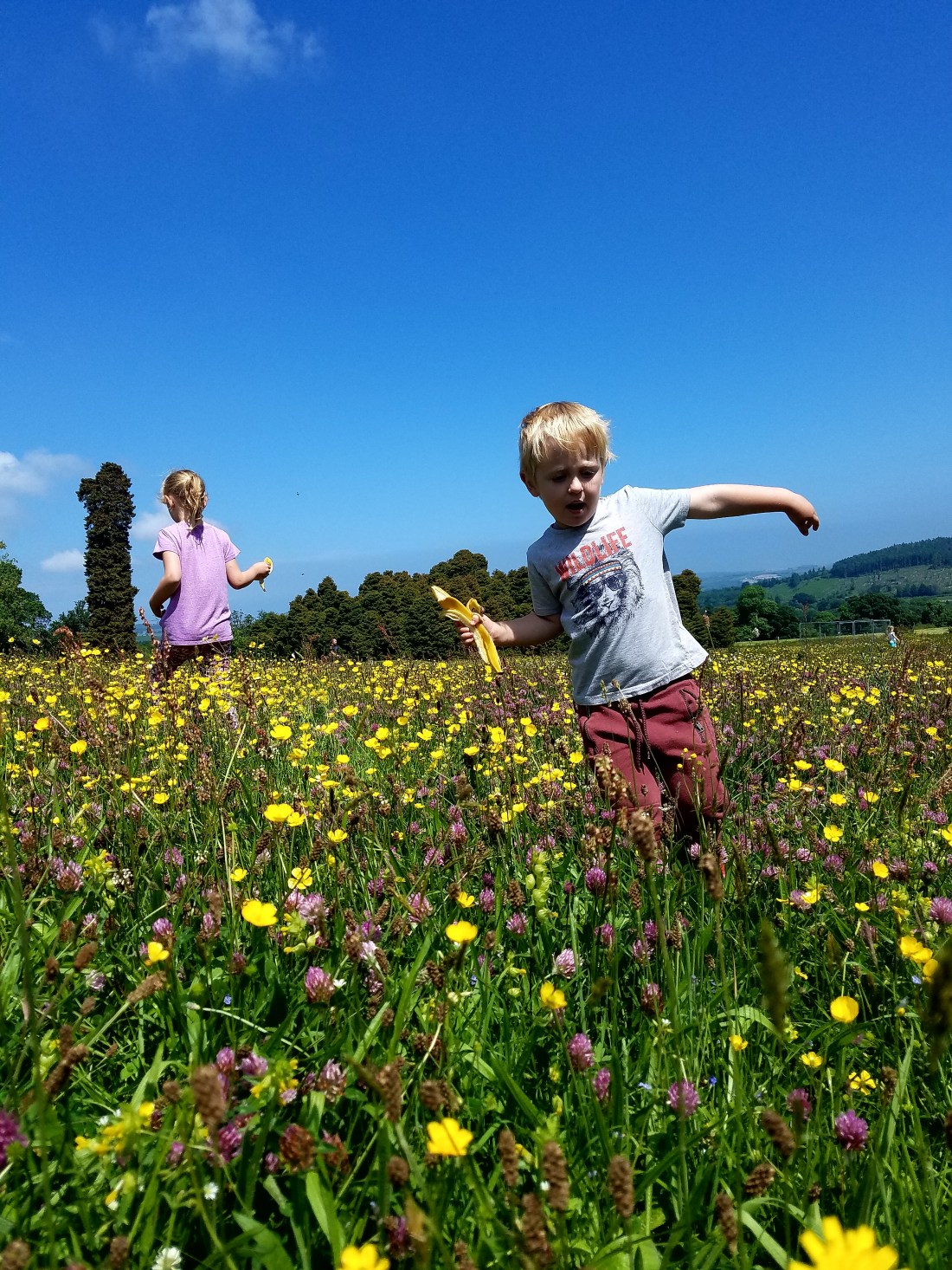 There was a lovely little sheltered beach called Sandeel Bay Beach right by our holiday home. It was evening time when we arrived and the tide was in so the beach was not accessible for us. The cousins didn’t care in the slightest as there was a sliver of sand at the top of the bay that they were able to play on. The world’s most expensive buckets and spades came in handy yet again!