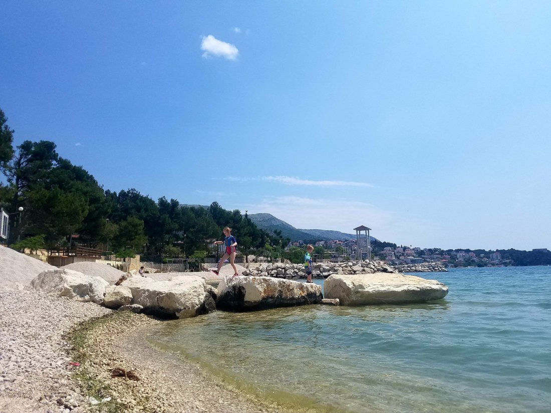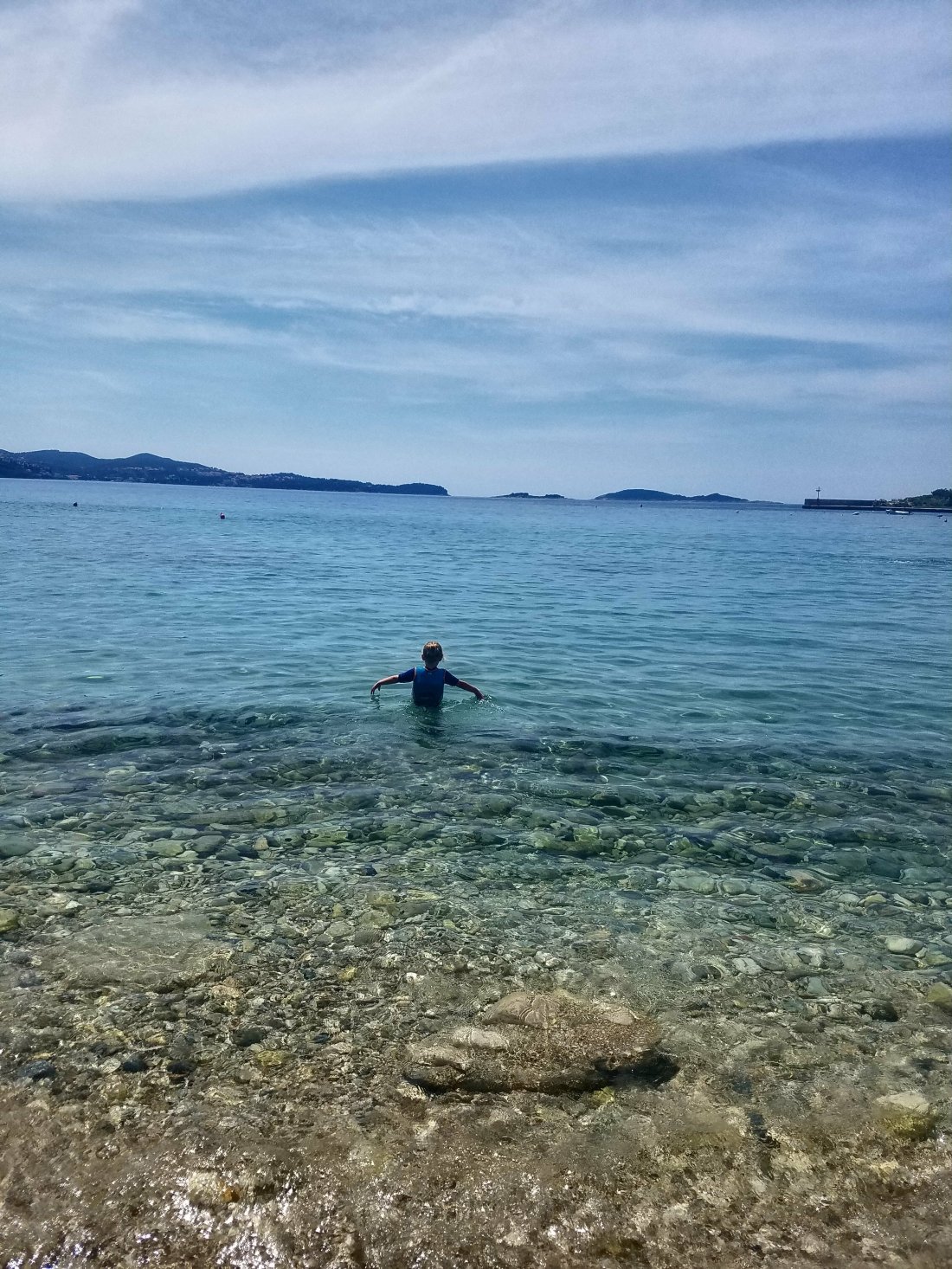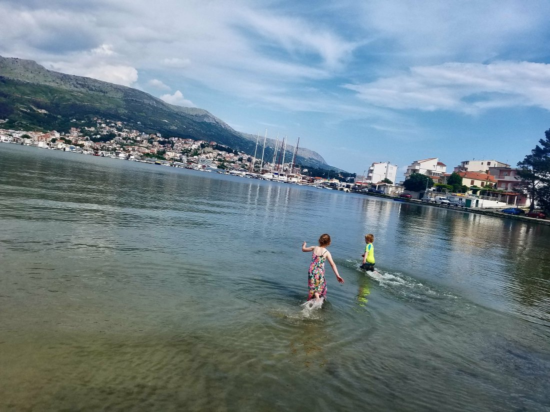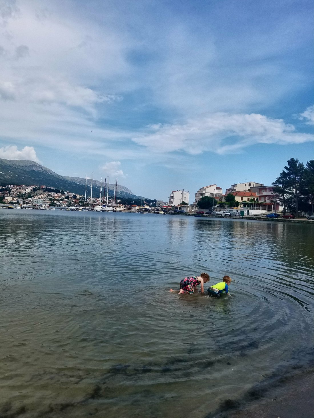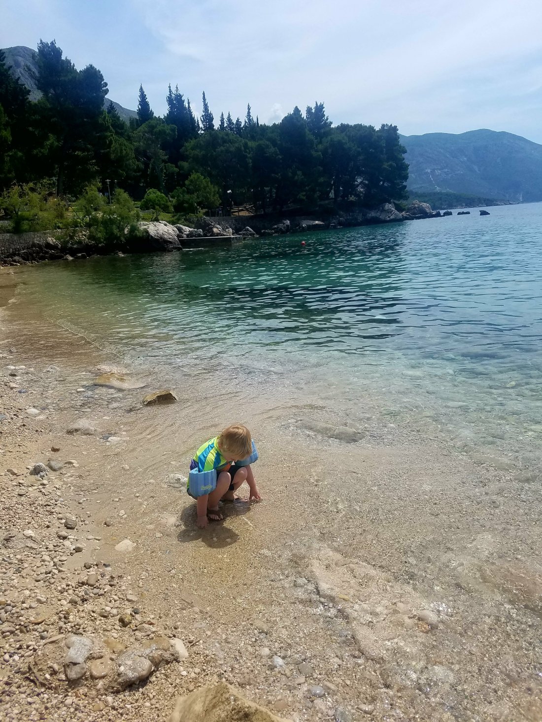 There was a lovely little sheltered beach called Sandeel Bay Beach right by our holiday home. It was evening time when we arrived and the tide was in so the beach was not accessible for us. The cousins didn’t care in the slightest as there was a sliver of sand at the top of the bay that they were able to play on. The world’s most expensive buckets and spades came in handy yet again!