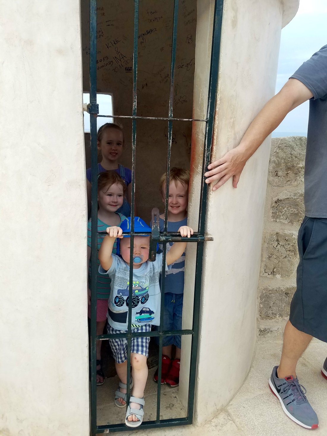 The fort was closed on this particular day, but we met two donkeys which delighted the kids. They called them Harry and Sally.