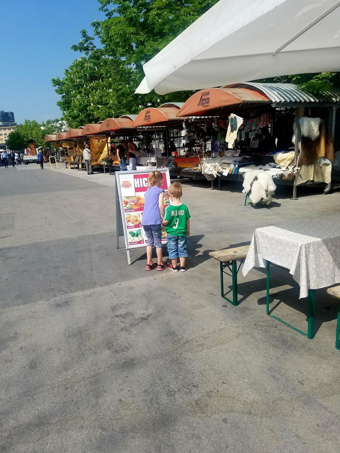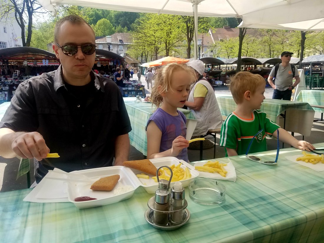 Central Market is Ljubljana’s large outdoor market. It has close to a hundred stalls and sells everything from fresh fruit and veg, to clothes, to art. Wyatt and the kids tried some of the fried cheese at one of the multiple food trucks. It was so- so.