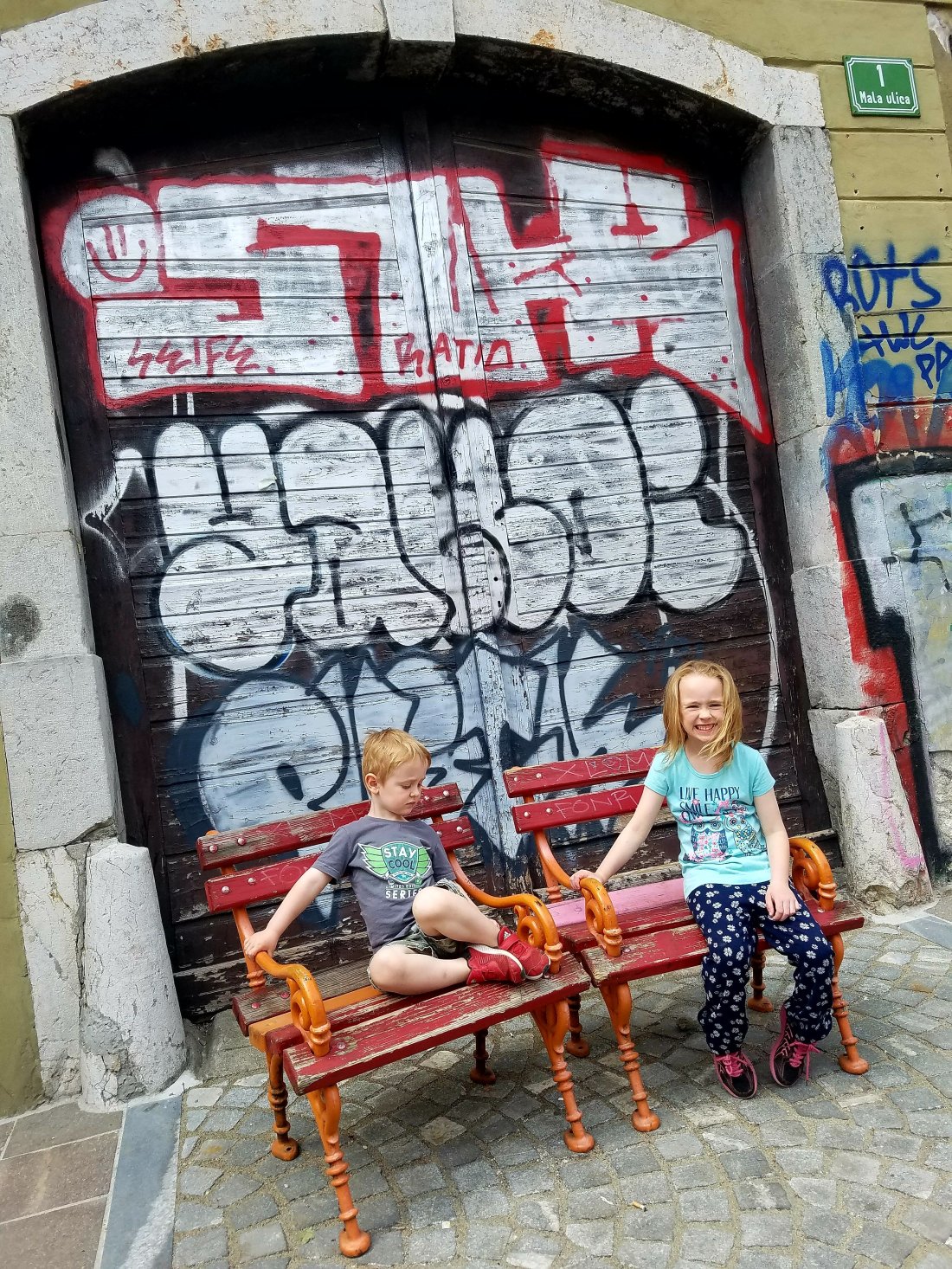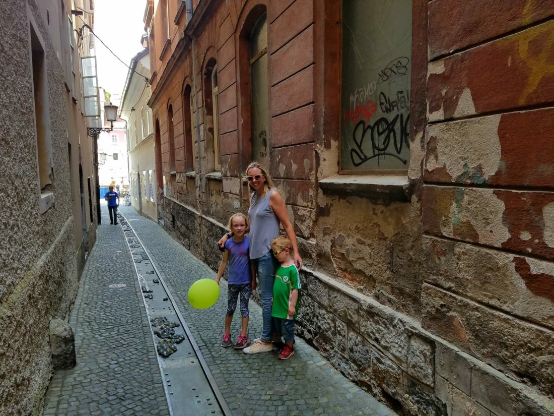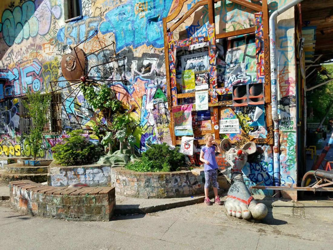 Ok…..this one was kind of weird if I’m being honest. Metelkova City was formerly the Slovenian army barracks headquarters of the Yugoslav National Army. After the 1991 declaration of independence in Slovenia, a bunch of artistic squatters took it over and now Metelkova is an autonomous part of the city. A cool concept, but going there with the four and six year old did not feel the most comfortable. There was some amazing art and graffiti in this cultural center though, and I’m glad we took a few minutes to quietly and quickly pass through.